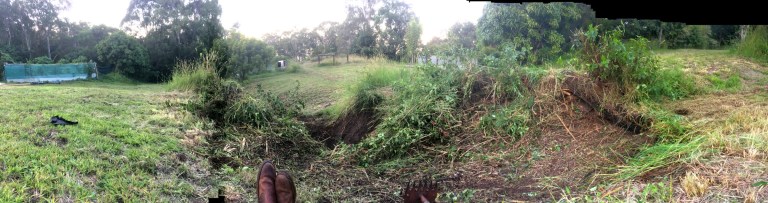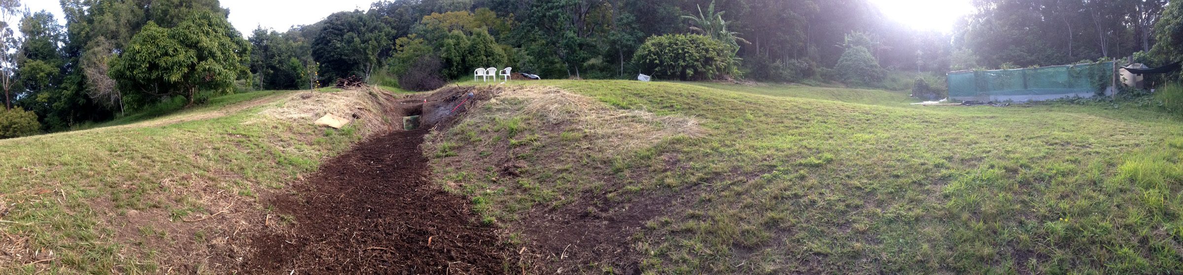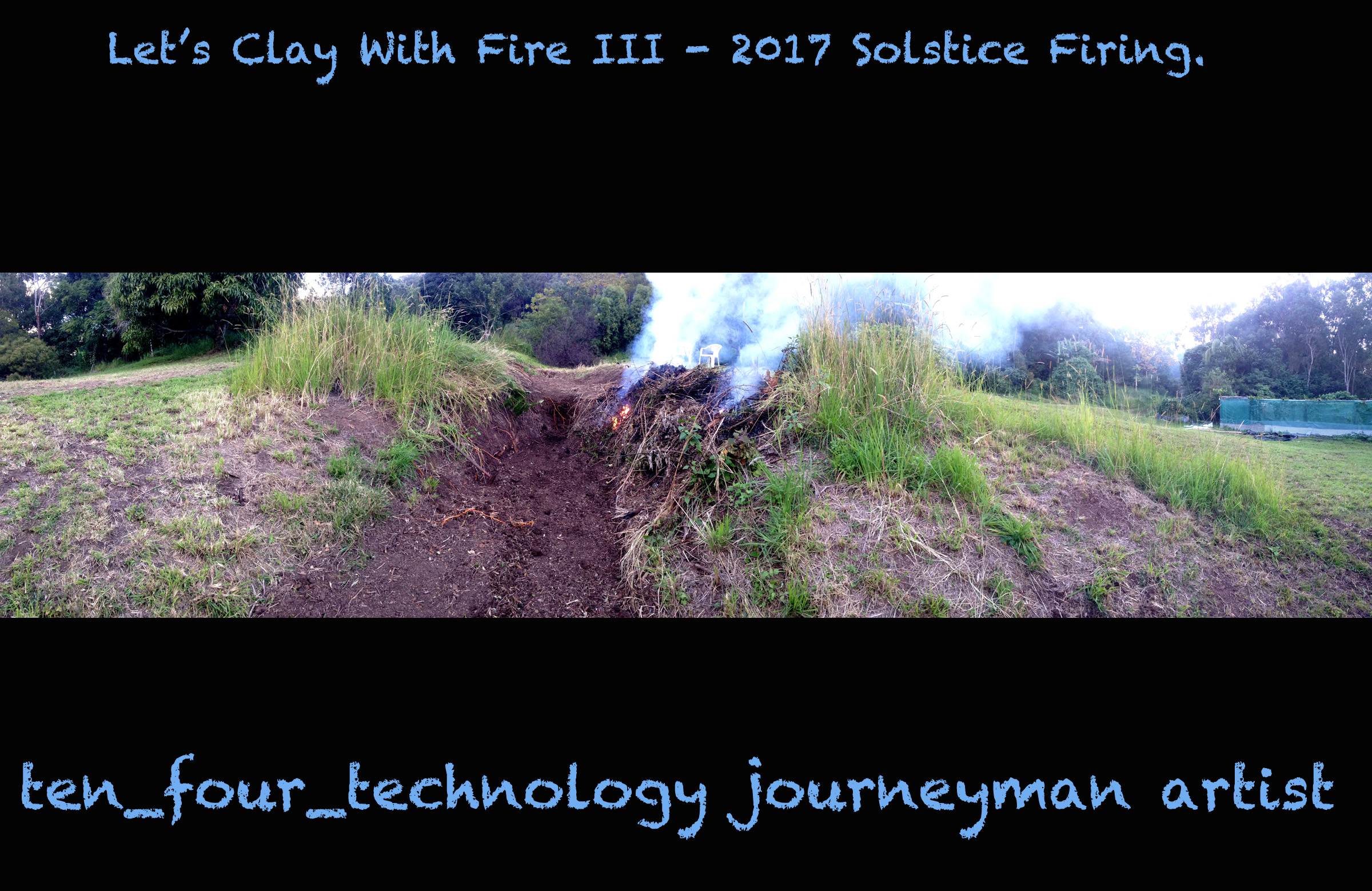 Work has started on the site for this years solstice firing event “Let’s Clay With Fire III”. An in situ work this time around, in the form of a water feature gully sculptural solstice dish.