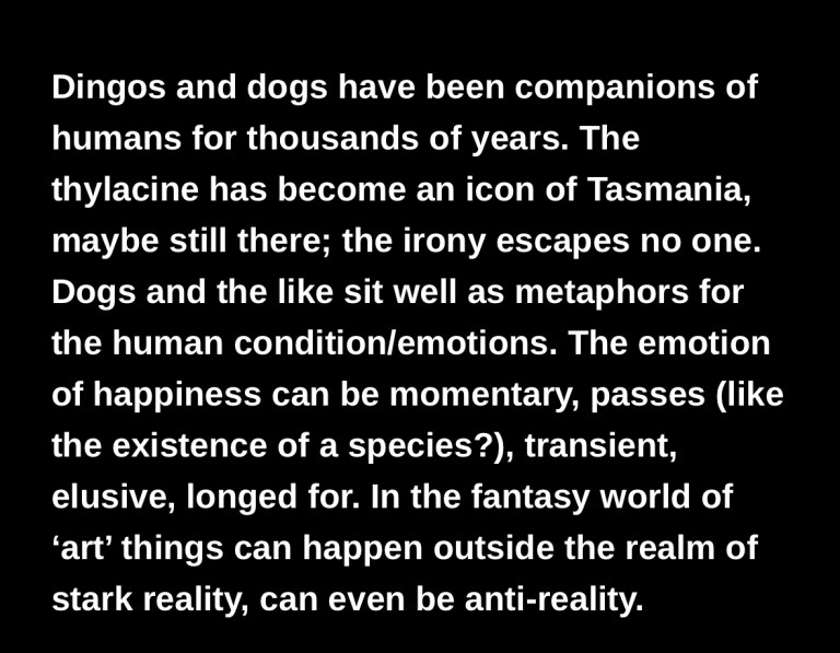 January 28, 2025January 28, 2025 Dingoes Dogs & Thylacines Transcending the Transience if Happiness… 1998. Related