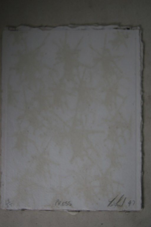 As an adjunct to the Press installation Ford produced a clamshell box set containing documentation of the event including a video, etchings, serigraphs on paper, 2 t-shirts, and printed documents.