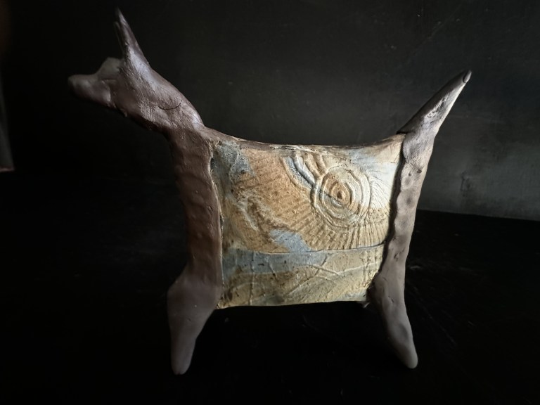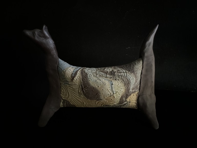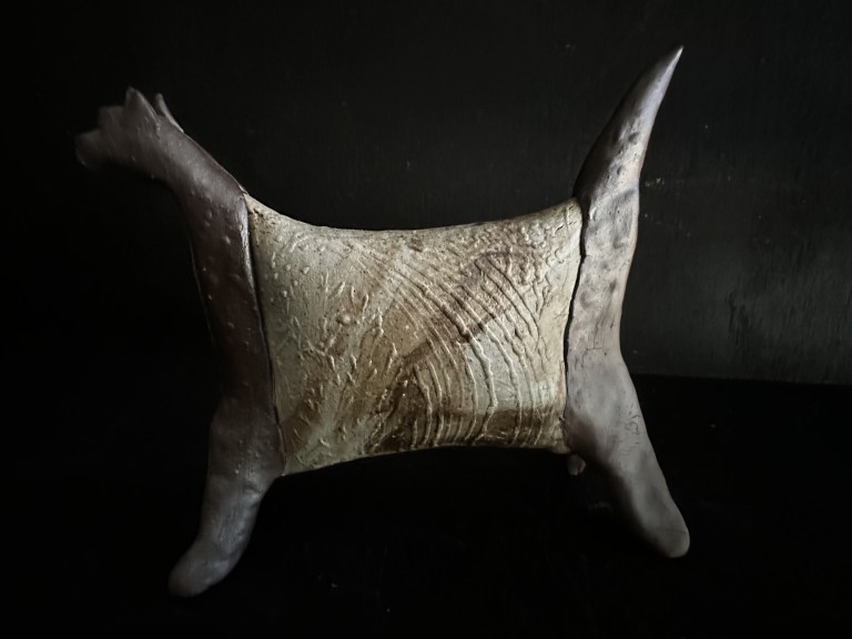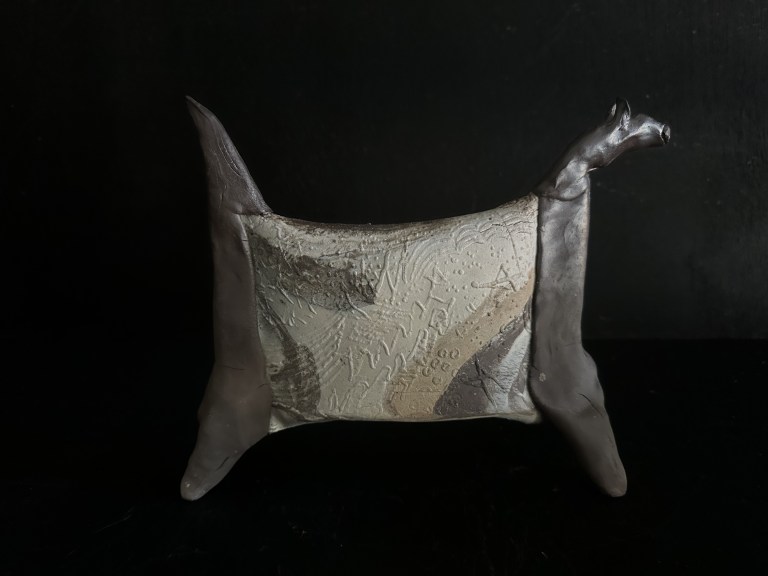 Flying Martian Thylacine. 2023 wood fired ceramics.