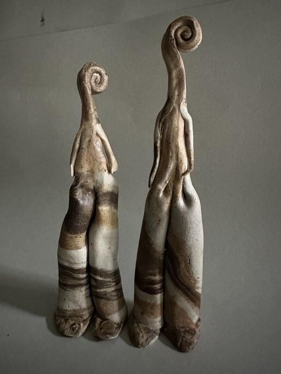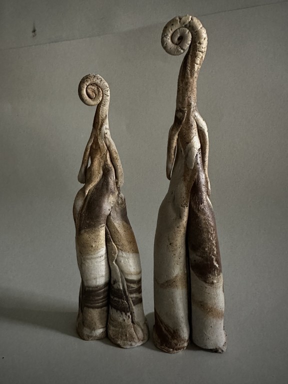 Fibonacci Martian Couple 2023 Wood fired ceramics. Marbled clays XS 2. approx 180mm height. Sold.
